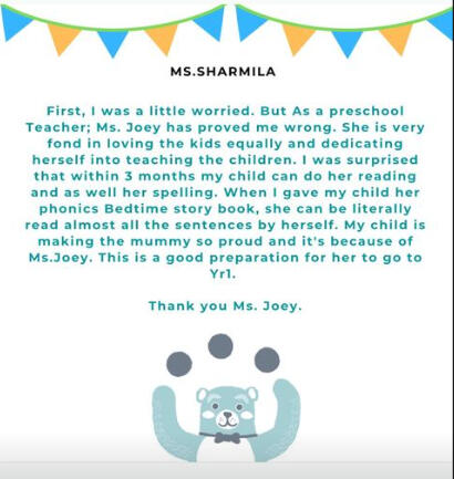 Ms Joey graduated with a Bachelors degree in Education majoring in early years learning. She was a lead homeroom teacher in Treetop International School KL for 3 years and was instrumental in developing earlychildhood program & syllabus for the school. She has a Cambridge IGCSE teaching cert for Mandarin language and has provided private tutoring services for kids age 4 to 16